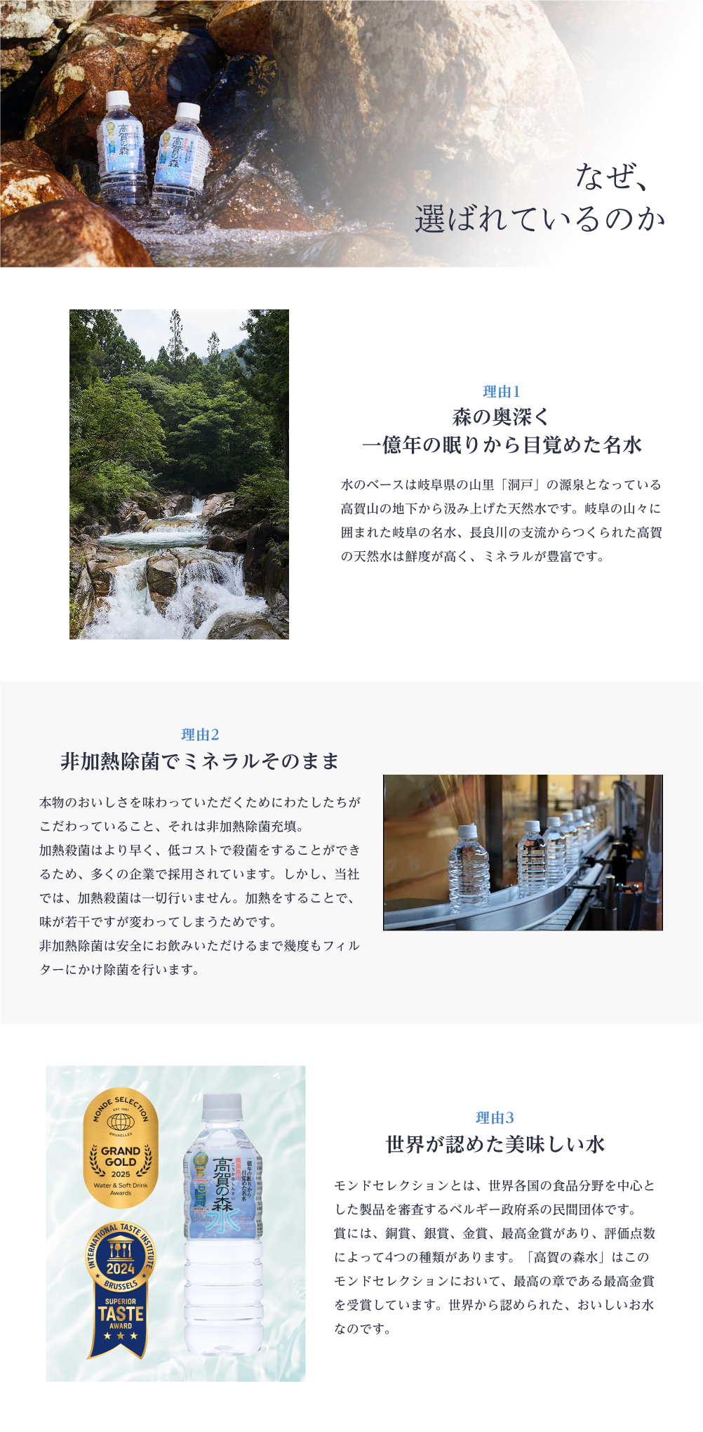 一億年の地層から湧き出た天然水。赤ちゃんも飲める超軟水です。